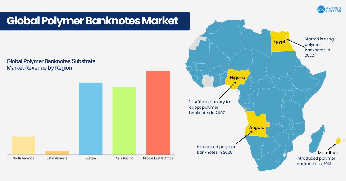 The polymer banknote market is set for sustained growth, particularly in regions like Asia-Pacific, where countries such as India, China, Australia, and Southeast Asia are rapidly adopting polymer substrates. The growing focus on currency security and sustainability is expected to further drive this trend. By 2030, more countries are likely to transition to polymer banknotes, contributing to an accelerated market expansion.